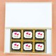 - There are printed chocolates in the box, each with a name and greeting printed on it