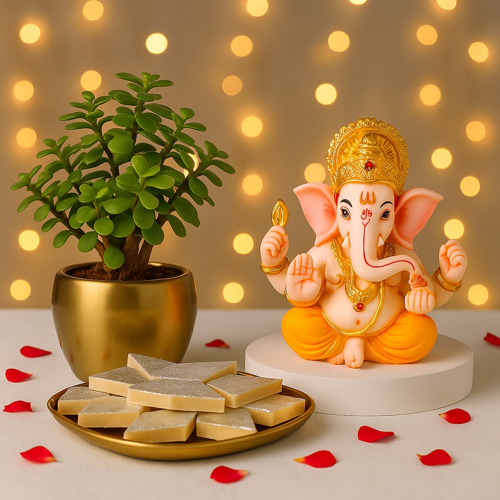 Sku: ganeshidolwithjadeplantandsweets-var-default