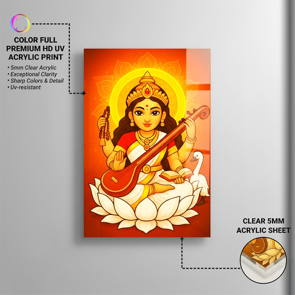 Maa Saraswati Wall Frame with Uv Printed Acrylic